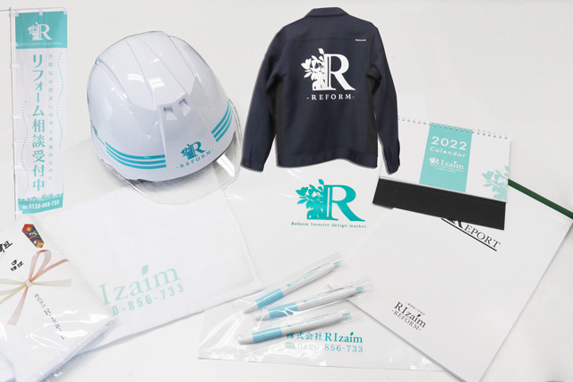 他にも社内用にカレンダー・ヘルメット・ビニールバッグ・レポート用紙・制服等々、色々作りました!