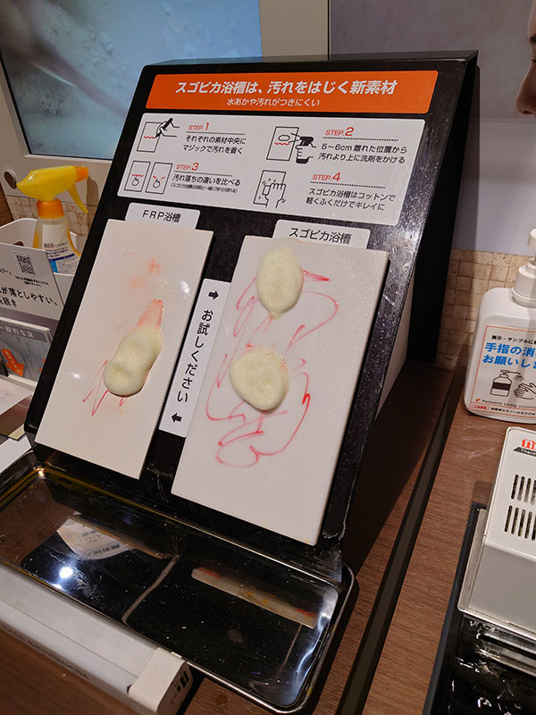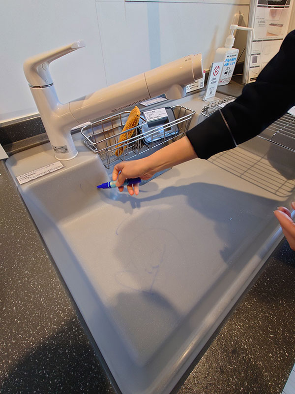 店員さんが汚れを想定し、シンク内をマッキーで落書きしている様子です