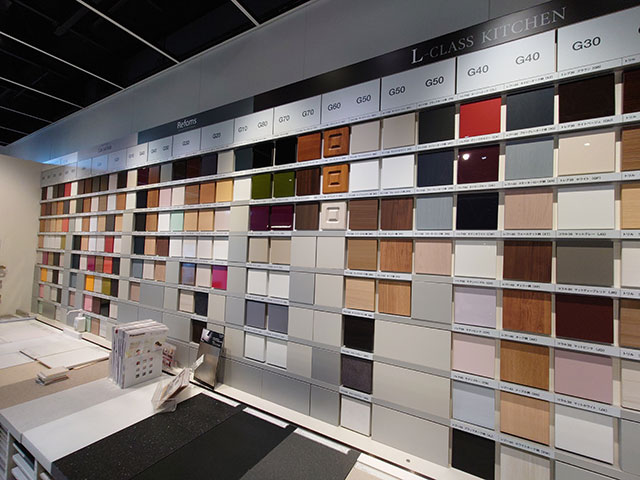 キッチンの素材や色だけでこれほどのバリエーションがありました。種類に圧倒されて見ているだけでワクワクします!