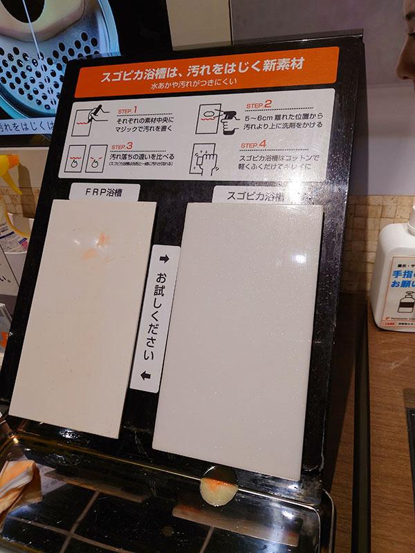 こちらの浴槽にもキッチンと同じくスゴピカ素材が使用されていて、ぬめりや黒ずみの原因となる水アカがつきにくいものとなっています
