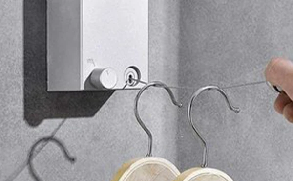 壁に取り付け、使うときだけワイヤーを引出しパッと手軽に干せます。一時的に洗濯物が増えるときなどにおすすめです!