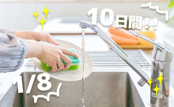 食洗機に使う水の量は手洗いの約8分の1といわれています。