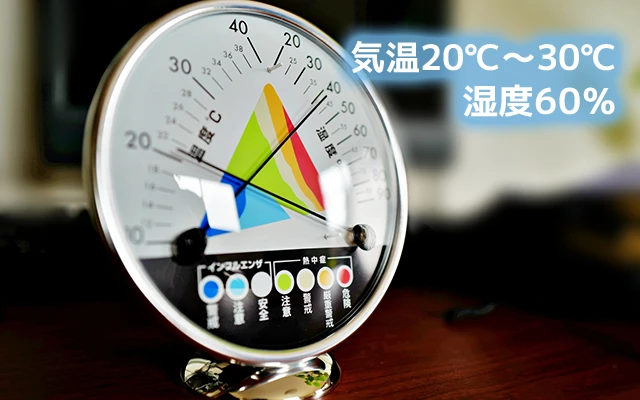 カビは気温20~30℃、相対湿度60%で生えやすくなります。