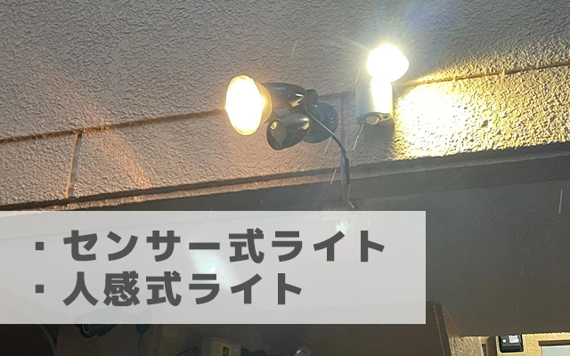 また、人が近づくとパッとライトが点灯する人感式センサーライトもおススメです。空き巣が近づくとライトで照らしてくれるので防犯対策になります。
