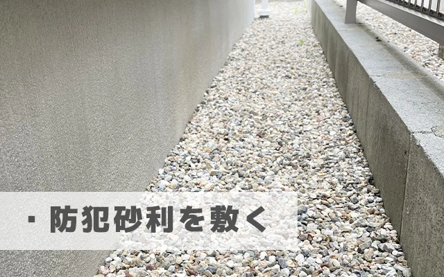 防犯砂利とは、踏んだ時に大きな音のする砂利のことです。ホームセンターなどで販売されています。