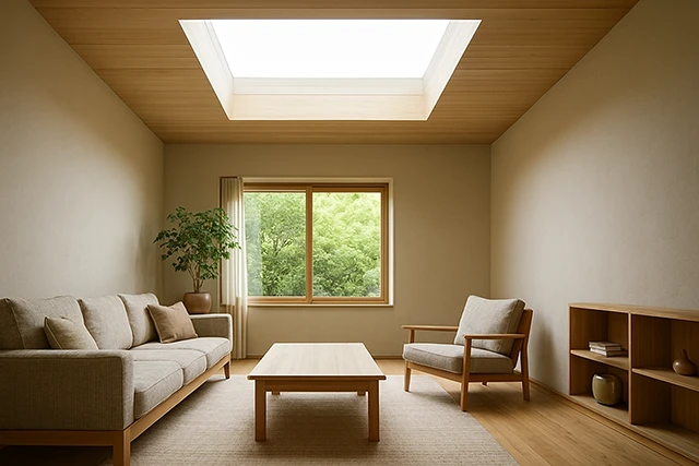 天窓から降り注ぐ光は部屋全体を均一に明るく照らし、開放感をもたらします。特に日当たりの悪い部屋や廊下などに取り入れることで、その効果を実感しやすいんです。