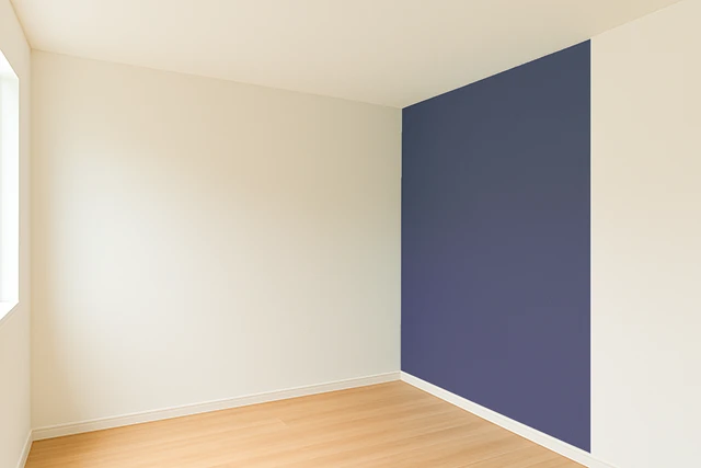 部屋全体を明るい色で統一するだけでなく、アクセントウォールを設けることで空間に奥行きと変化を持たせることができます。例えば壁の一面だけを少し濃い色や、気分を明るくするソフトなイエローやオレンジ、あるいは落ち着きを与えるブルーやグリーンなどにすることで、空間にアクセントが生まれ単調な印象を避けることができます。