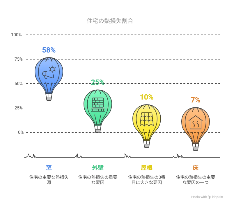 今年の冬も寒い日が続きましたね。皆様、暖かくしてお過ごしでしたでしょうか? さて、快適な住まいと省エネを考える上で見過ごせないのが「窓」の存在です。実は、冬に住宅から逃げていく熱の、なんと約58%が窓からと言われています。そして、これから迎える夏。今度は外から侵入してくる熱の、実に約60%〜75%が窓からなのです。