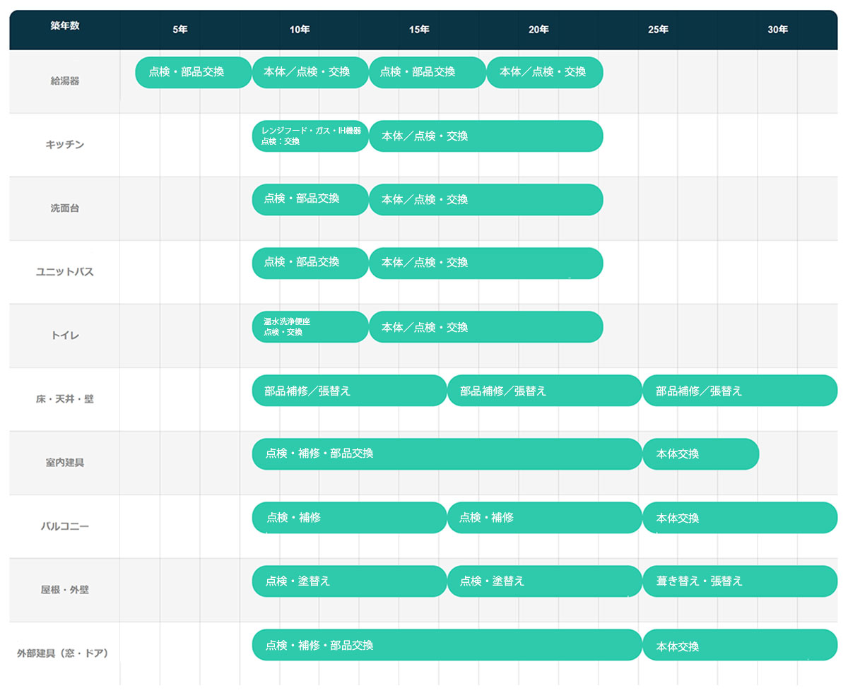 住まいのお手入れ メンテナンスタイミング