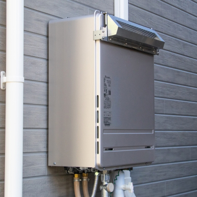 その名前の通り屋外の壁に掛けて設置されているタイプの給湯器になります。この給湯器のタイプは給湯器の下部より配管が出ています。配管カバーで配管が隠れている場合がありますが、給湯器の下部より配管が出ていれば屋外壁掛けタイプとなります。戸建ての他にマンションなどでもベランダの壁に取り付けられている場合があります。