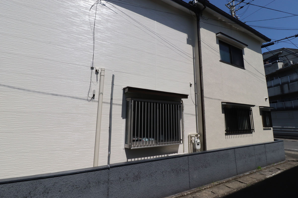 もうすでに壁がだいぶん剥がれているので、塗装だけではどうにもならずサイディングを施すことにしました。サイディングだと家の強度もアップするのでお客様にもご承諾頂きました。ただ壁をサイディングするとそこだけが綺麗になってしまうため、庇や樋なんかの塗装もさせて頂きました。