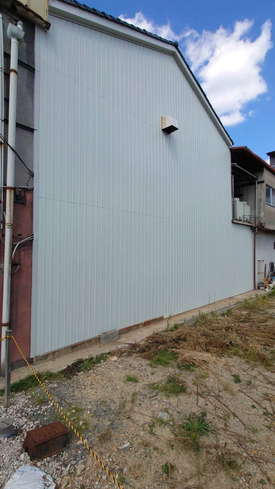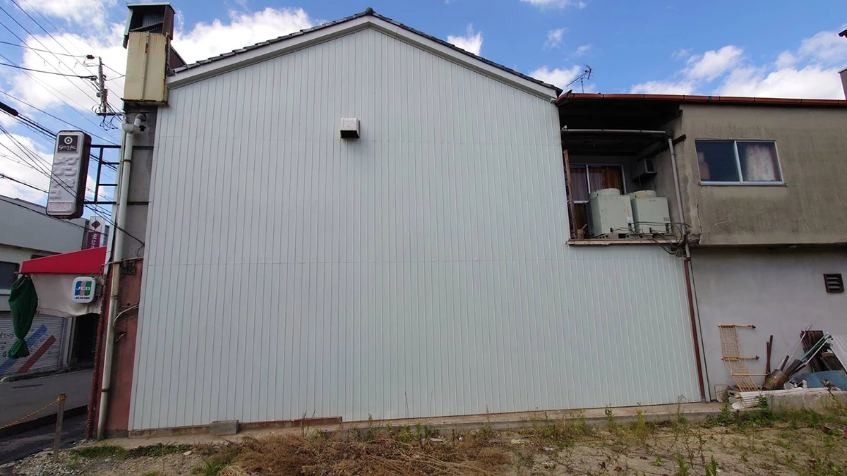 はじめ外壁の塗装を希望されていましたが、現地調査を行ったところ既存の下地が劣化しており単純な塗装では問題が解決しないことが明らかとなりました。お客様には丁寧にその事をご説明し、トタンからガルバリウムのリブ鋼板への張替えを提案させていただきました。 ガルバリウムは軽量でありながら揺れに強く、サビにくく、ひび割れがしにくく耐久性が高いという点をご説明し、非常にコストパフォーマンスが良いことをお伝えしご納得いただけました。